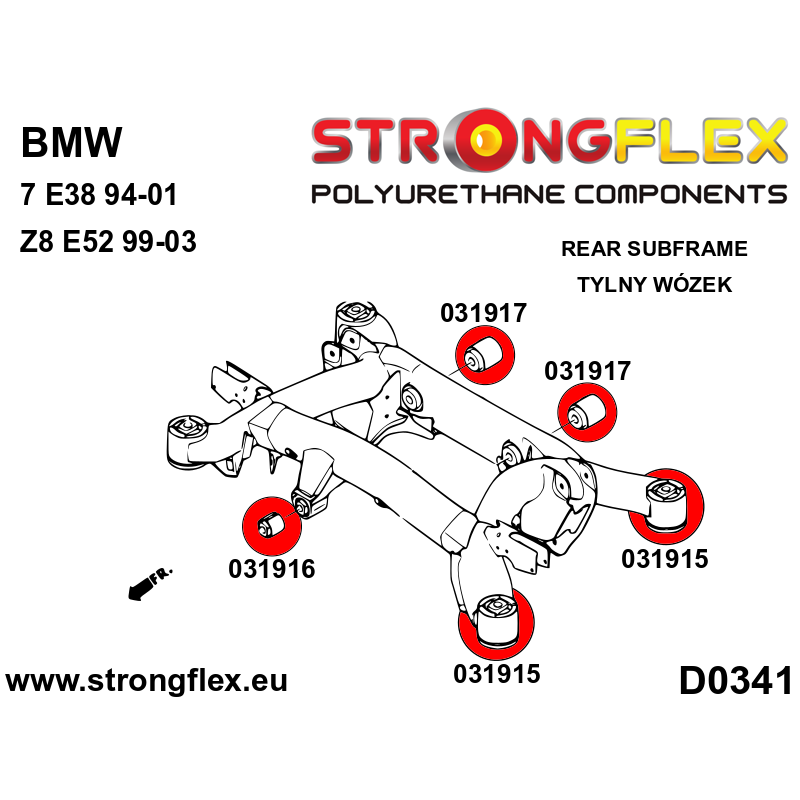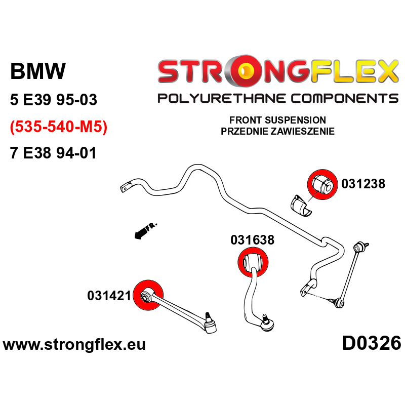 Include:2 x 031410A Front lower front bush SPORT2 x 031638B Front lower tie bar to chassis bush 66mm2 x 031238B Front anti roll bar bush*Diameters:20,22,24,25,27mm2 x 031744A Rear toe adjust inner bush SPORT2 x 031914A Rear upper arm inner bush SPORT2 x 031197A Rear lower trailing arm - front bush SPORT*2 x 031198A Rear lower trailing arm - rear bush SPORT*2 x 031167B Rear anti roll bar bush*Diameters:10,11,12,13,14,15,16,17,18,19,20,21,22,24,25mm4 x 031915B Rear subframe1 x 031916B Rear diff mount - front bush2 x 031917B Rear diff mount - rear bush